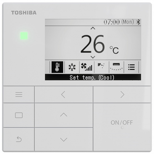 Wandgerät für RAV Ein-Raumsysteme zur Kombination mit Digital-Inverter-CLASSIC, Digital-Inverter, Super-Digital-Inverter und Digital-Inverter-BIG Außengeräten für Kältemittel R32. Mit ihrem unauffälligen Design passen diese Wandgeräte in Büros, Shops, Hotels, Technikräume, Restaurants, etc. Verfügbar in sechs Leistungsabstufungen von 2,5 bis 10,0 kW.